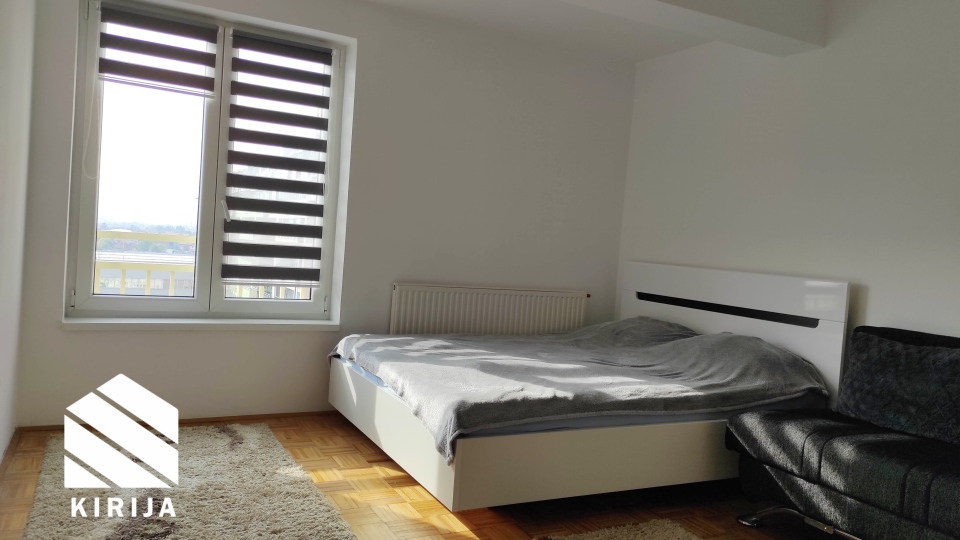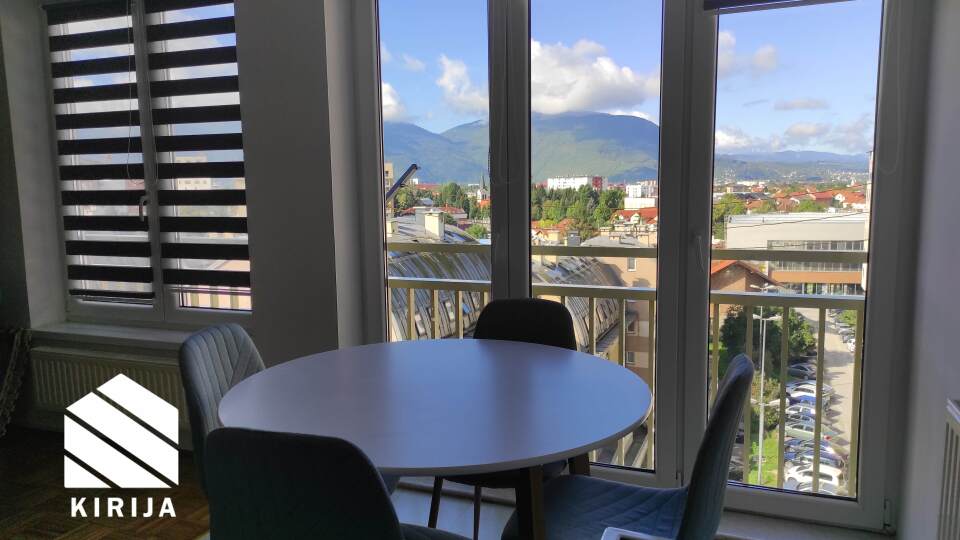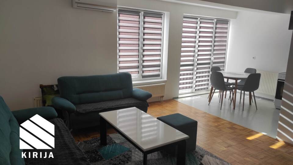 Izdaje se izuzetno svijetao i komforan dvosoban stan površine 57m2. Stan ima veoma lijep pogled i nalazi se na 6 spratu (zgrada ima ukupno 8 spratova). Posjeduje lift. Stan se izdaje namješten. Stan se sastoji od spavaće sobe, dnevne sbe, kuhinje sa trpezarijom, kupatila i ulaznog hodnika. Stan ima PVC stolariju, blindo vrata, parket, interfon, plin, klimu. Grijanje je prvenstveno na plin, a može i na klimu/inverter.