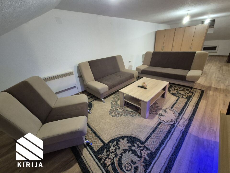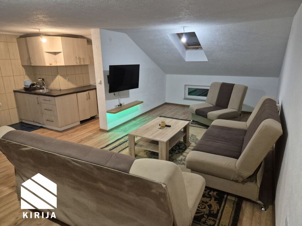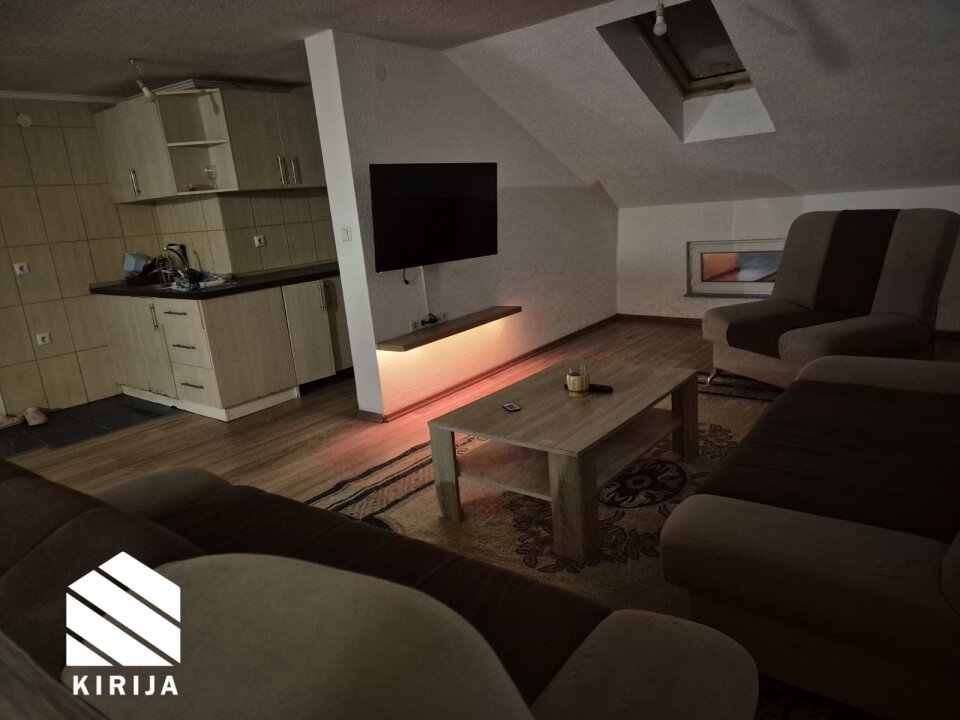 Izdaje se potpuno namješten stan u kući koja je uređena kao stambena zgrada. Stan je otvorenog tipa površine 75 m², udaljen svega nekoliko minuta od glavne saobraćajnice na Otoci.
