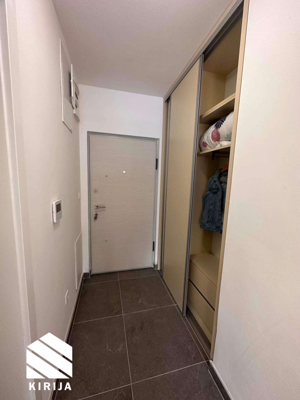 Hodnik sa velikim plakarom, kupatilo, dnevna sa kuhinjom i odvojena spavaća soba.